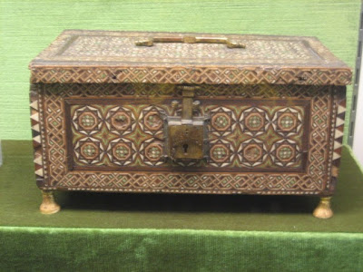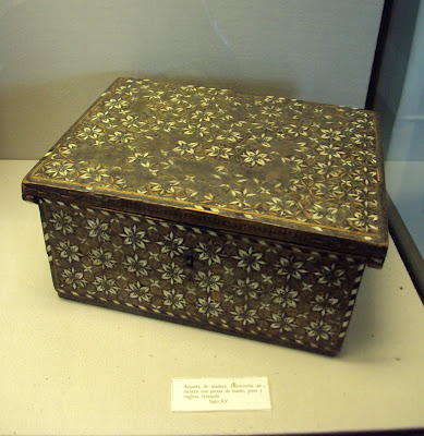 | Arqueta de madera con decoración de taracea con piezas de taracea con piezas de hueso, plata y madera (Granada, siglo XV) Museo Arqueológico Provincial de Granada |