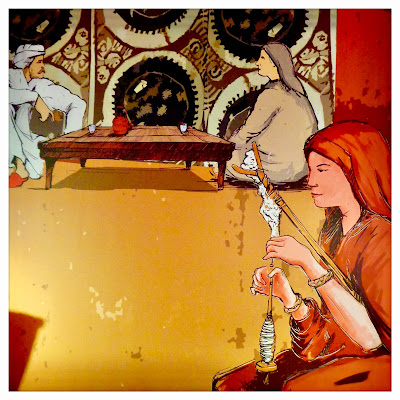 Utilizaban cortinajes para delimitar los espacios donde transcurría su vida, haciéndolos lugares confortables, jugando con la luz y agradando a la vista. De tela son también los manteles, cobertores y alfamares de las camas, los cabezales y almohadones, a veces de vistosos colores e hilos de oro que adornaban las estancias nazaríes. Aunque hoy estos espacios, convertidos en monumentos, parezcan vacíos, debemos evocar una Alhambra vestida con los mil colores de sus vidrieras, vajillas, cortinas, colgaduras, almohadones, alfombras y tapices, unidos a los juegos de la luz, el color y la música de los sonidos del agua, alcanzando una belleza difícil de imaginar.