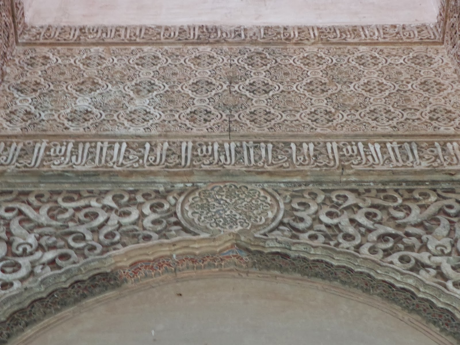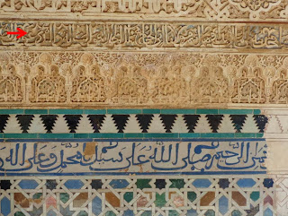 | Rodeando la puerta que accede al pasillo en recodo aparece la siguiente inscripción: No hay dios sino Alá, Mahoma es el Enviado de Dios |