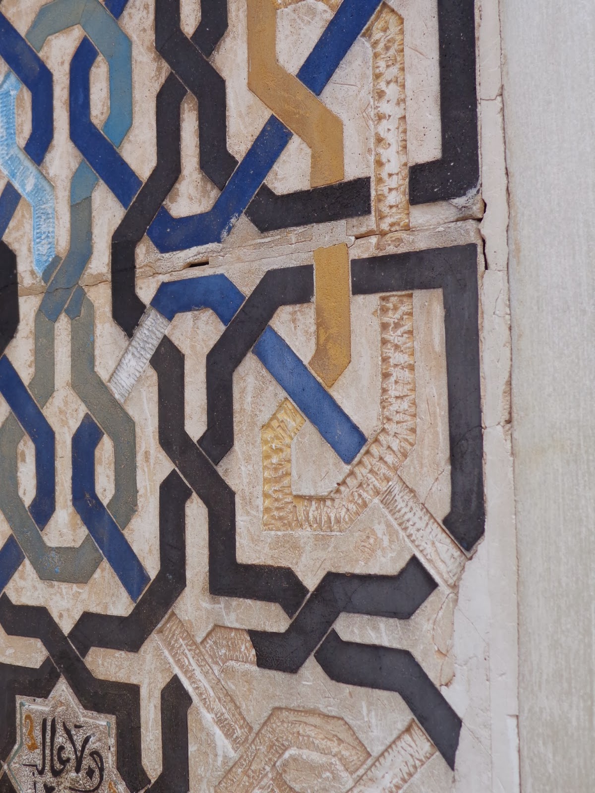 Los zócalos, también conocidos como arrimaderos, tienen la función de proteger la pared de la humedad y el roce; en este caso, el alicatado tiene además una decorativa: a partir de pequeñas piezas hasta se forman composiciones más grandes. mientras que en época de Yusuf I, la decoración más utilizada en la formada por estrellas de doce y ocho puntas, bajo el reinado de Mohammed V se pone de moda el tipo de lazo de cintas entrecruzadas, como también se puede ver en la decoración de la fuente de los leones.
