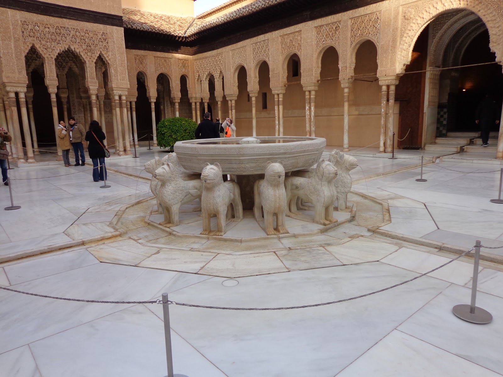 Sin duda, el patio de los Leones es un ejemplo interesante de integración de la arquitectura con el agua, donde la Fuente de los Leones reparte desde el centro del patio el agua por todo el palacio, significando un claro elemento visual de unión con sus costados.