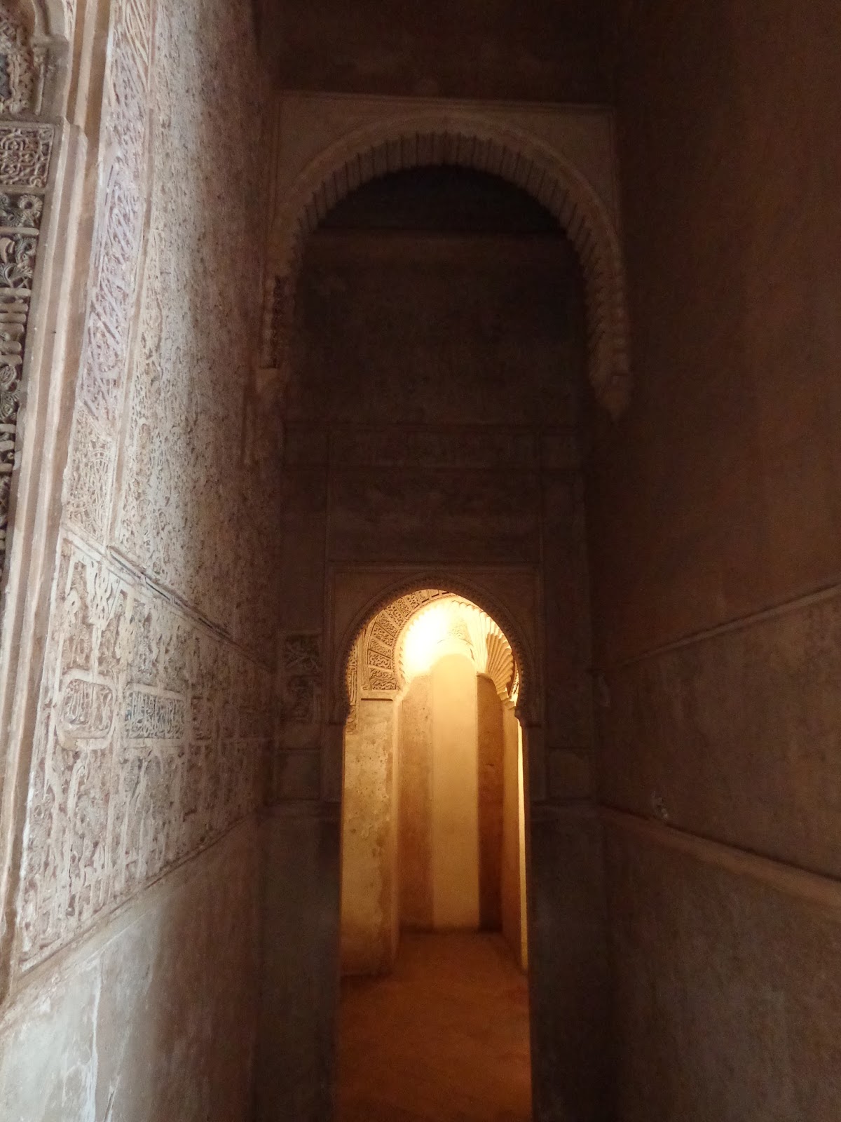 A través de un estrecho pasadizo, modificado en su disposición original en los tiempos cristianos, se pasa del patio de los Arrayanes a la Sala de Mocárabes del Palacio de los Leones.