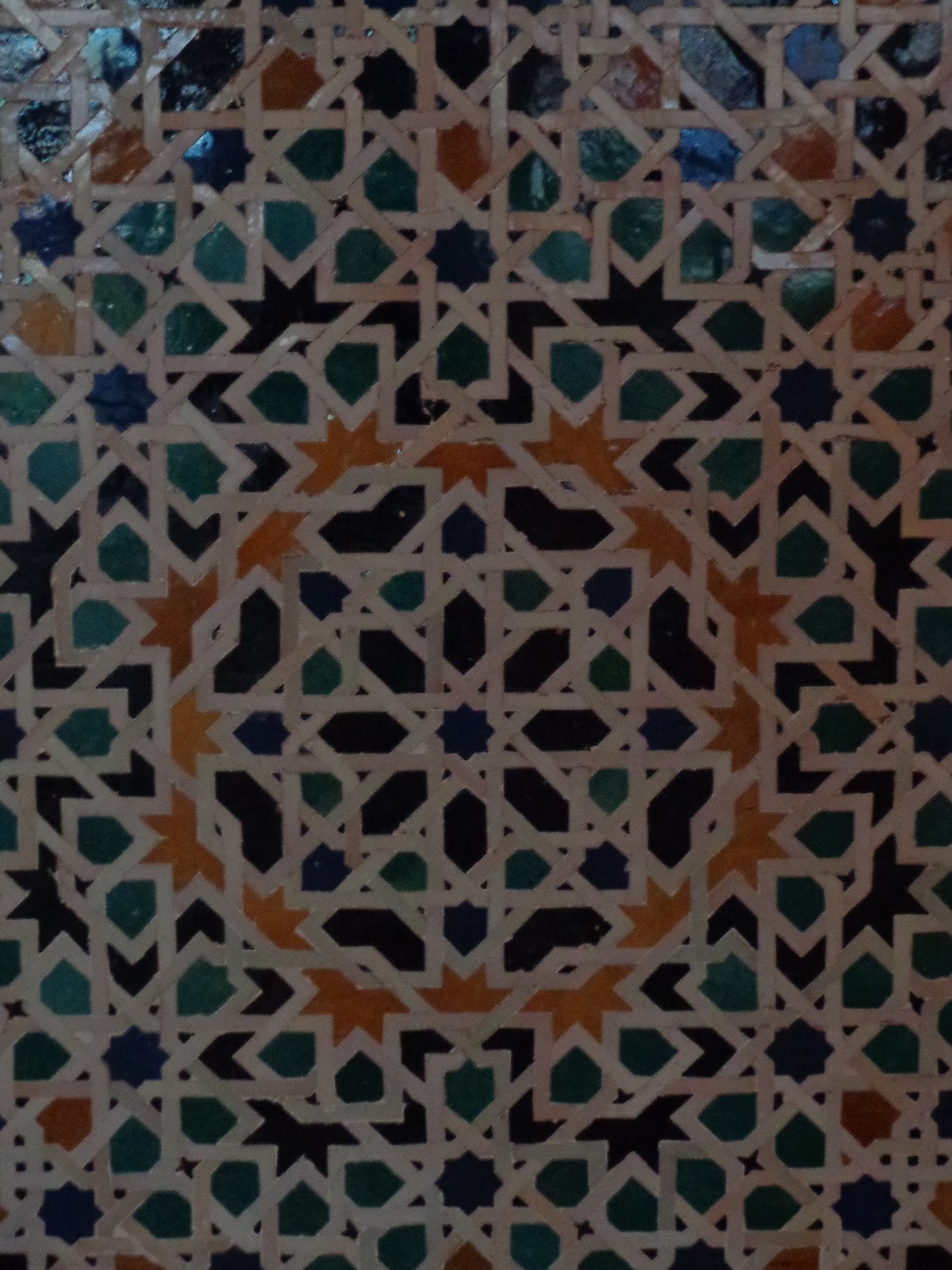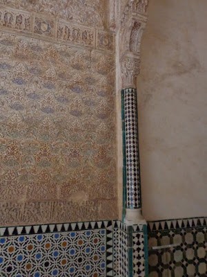 | En los estucos, al igual que en los zócalos alicatados se aprecia la repetición e importancia de los motivos geométricos |