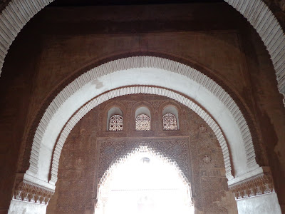 | Al construirse la bóveda del Sala de la Barca se debieron cubrir tres arcos que iluminaban las ventanas altas que hay sobre la entrada principal del Salón de Comares o de Embajadores |